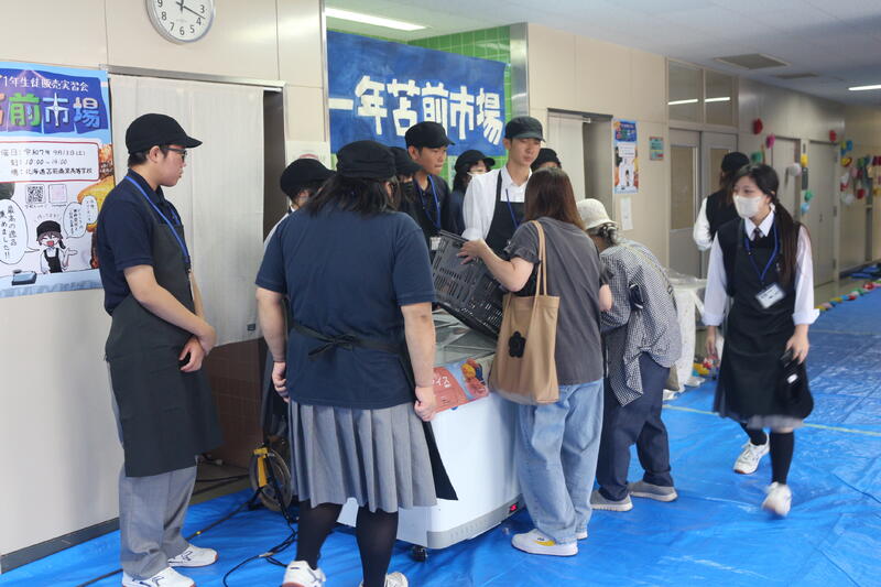 苫前商業高校の生徒たちが、地元の特産品や生徒が開発したオリジナル商品を販売し、苫前の魅力と味わいを知ってもらえるよう、元気いっぱい頑張りました。