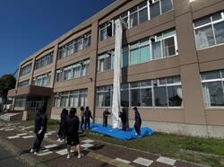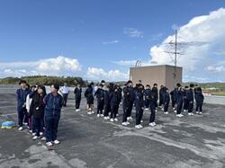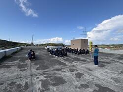 午前の最後には地震・津波を想定し、屋上への垂直避難訓練を実施しました。その後、3階からの避難を想定した緩降機の体験を行いました。生徒たちは、本当にこの布に全てを任せてよいのかとドキドキしながらも、恐怖を乗り越えしっかりと避難することができました。