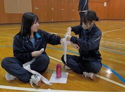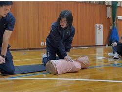10月2日(木)、1日防災学校と避難訓練を行いました。午前中は古丹別消防隊員の方々にお越しいただき、救命救急講習を実施していただきました。心肺蘇生法やAEDの使い方だけでなく、三角巾を使用した圧迫止血法も教えていただきました。