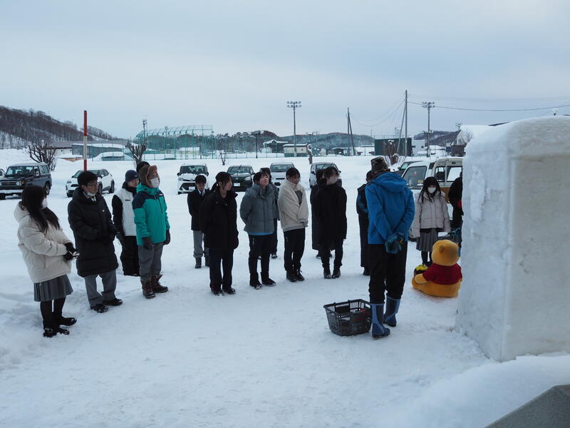 ご存じの通り、本校は町外からの入学生が多いです。そのため、地域の理解を深めるために町内の企業や施設の見学を実施しています。苫前町議会議員であり本校のPTA顧問である間宮英明様の案内で1年生の恒例行事となっています。