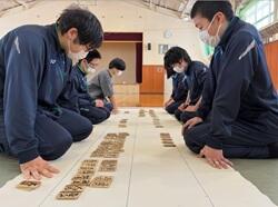 「かるた大会」は、今年で38回目となる伝統行事で、全校生徒が学年問わずチムを結成し、木札のかるたを用いて下の句を読みあげ札を取っていきます♪今年も、苫前北斗カルタクラブより、田澤様・渡邉様・西様・合田様に読み手を務めていただきました。毎年ありがとうございます!