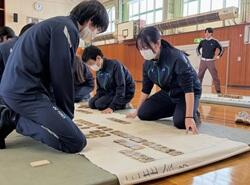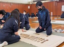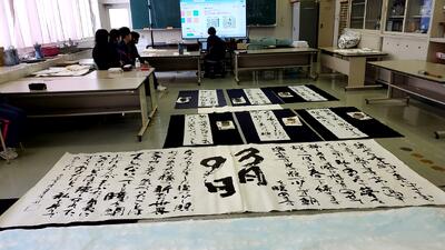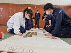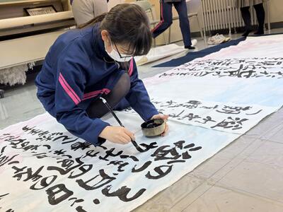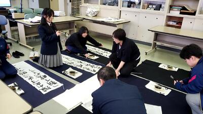 また、いつもは遠隔でおこなっている3年生「書道」の授業を対面で実施し、卒業に向けて全員で1枚の作品を完成させました。