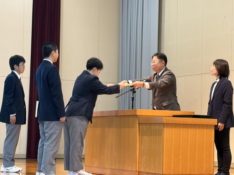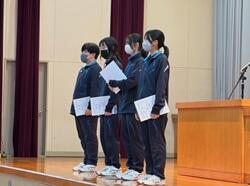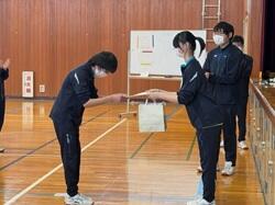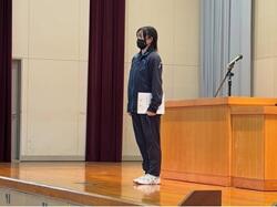 次いて、旭川地区新人バドミントン選手権大会 3部女子シングルス3位 金山さんの表彰伝達が行われました。