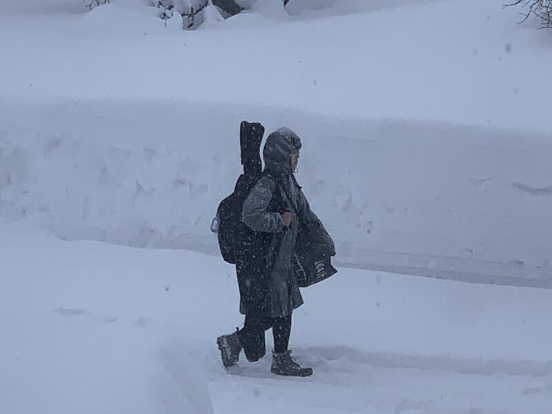 今朝も生徒の登校時間めがけて雪が降ってきました。冬だから、と言ってしまえばそれまでですが。其れにもめげずに生徒は元気よく登校しています。今日は2年生がスキー授業です。「スキーはスキー(好き)でない」と叫ぶ生徒もいますが、始まってしまえばみんな楽しくやってます。