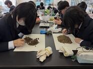 11月4日(火)1年生の生物基礎の授業で、土壌動物の採集を行いました!この後、ソーティングとカウントを行い、最後は多様度指数の算出まで流れていきます。