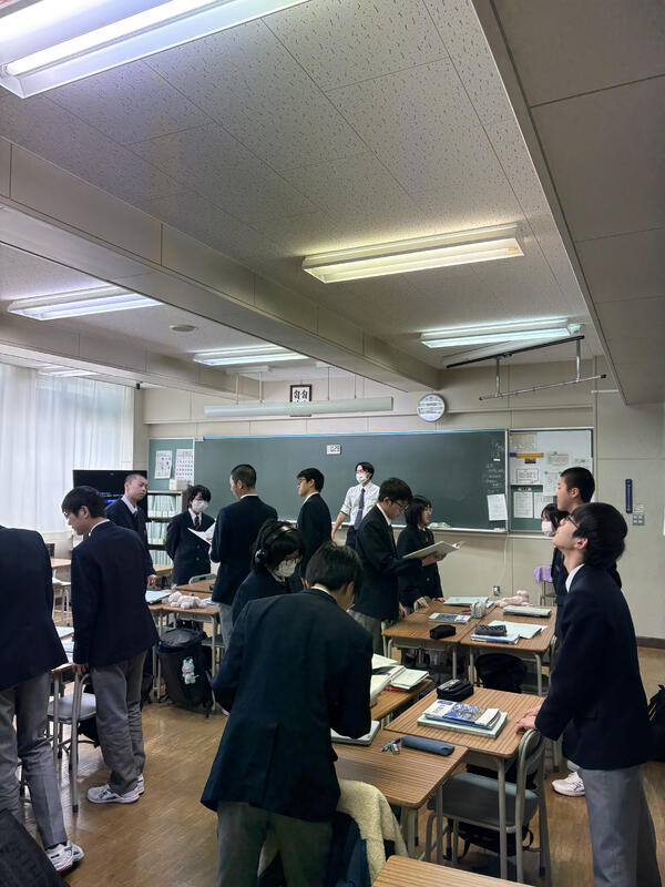 1時間目は前日に無事終了した風車祭りの反省から。学校祭終了直後から全学年急ピッチで準備を進めた風車祭りについて、各チームの良かった点、悪かった点、改善点を全学年で共有しました。学校行事が続いた7月。学年の垣根を越えての活動が多かったため、以前より全校生徒の距離が縮まったように感じます。