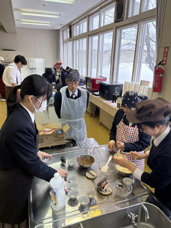 調理実習初のスイーツ作りとして、カップケーキ作りに挑戦しました。