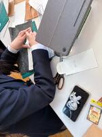 ただいま、2年生の皆さんが革細工に挑戦中です!