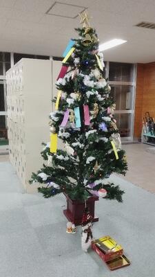 毎年恒例、生徒玄関にクリスマスツリーが飾られました。